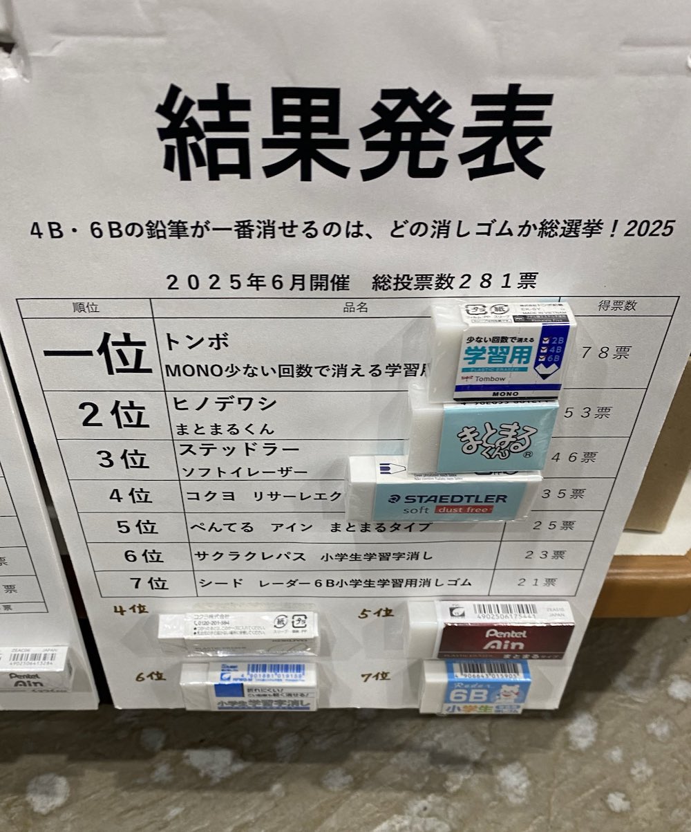 文房具屋で店員さんに「参考にしてください」って教えてもらったどの消しゴムか総選挙